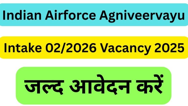 Indian Airforce Agniveervayu Intake Vacancy 2025:- भारतीय वायुसेना अग्निवीर वायु इंटेक्स 02/2026 भर्ती 2025 की पद अधिसूचना जारी कर दी …