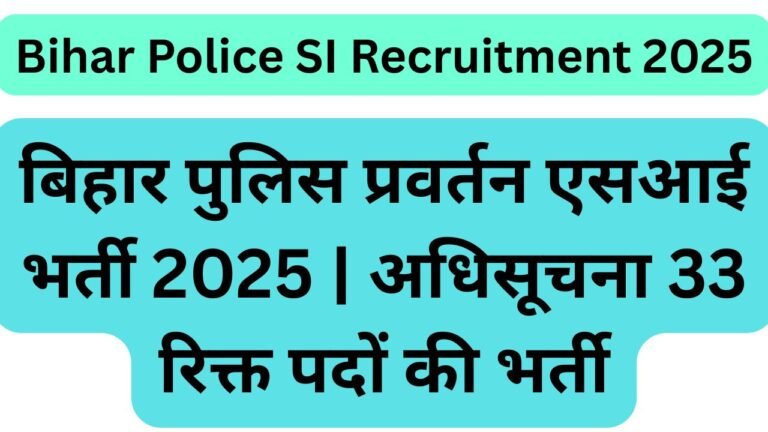 बिहार पुलिस प्रवर्तन एसआई भर्ती 2025 | अधिसूचना 33 रिक्त पदों की भर्ती